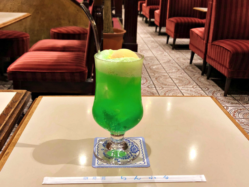 純喫茶に来たら、ついオーダーしたくなるのが「メロンソーダ」(700円)。シュワシュワとはじけながら輝く鮮やかなグリーン色のソーダを口にすると、なんだか少女に戻った気分。レースや花模様が描かれたコースターもレトロ可愛くて、気分が上がります!