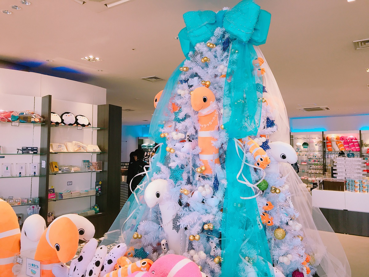 ショップでは、たくさんのチンアナゴやニシキアナゴのぬいぐるみで装飾されたクリスマスツリー「チンアナゴツリー」が2018年10月30日(火)~12月25日(火)の期間登場。そのユーモラスなカワイさに目が釘づけ!