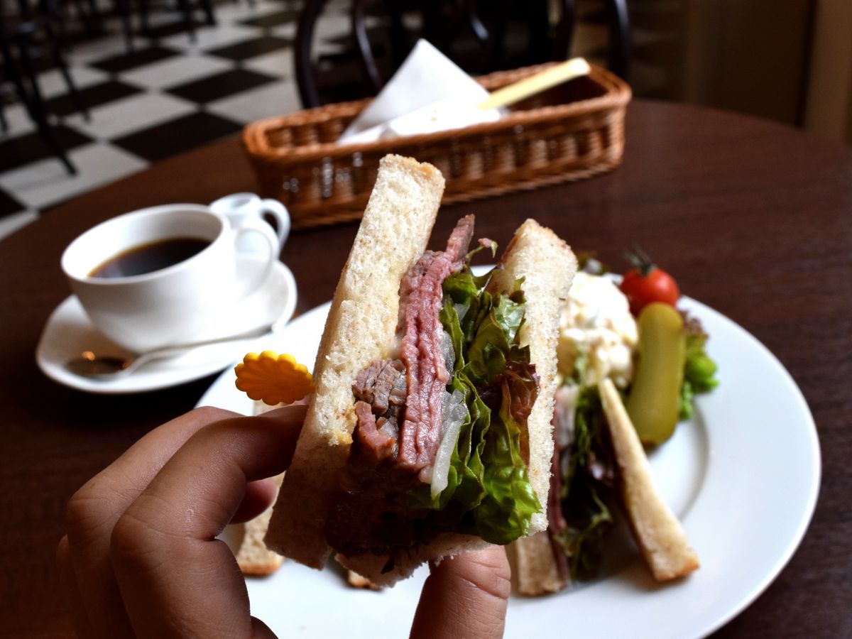 ボリューム満点のローストビーフサンドウィッチが美味しい!