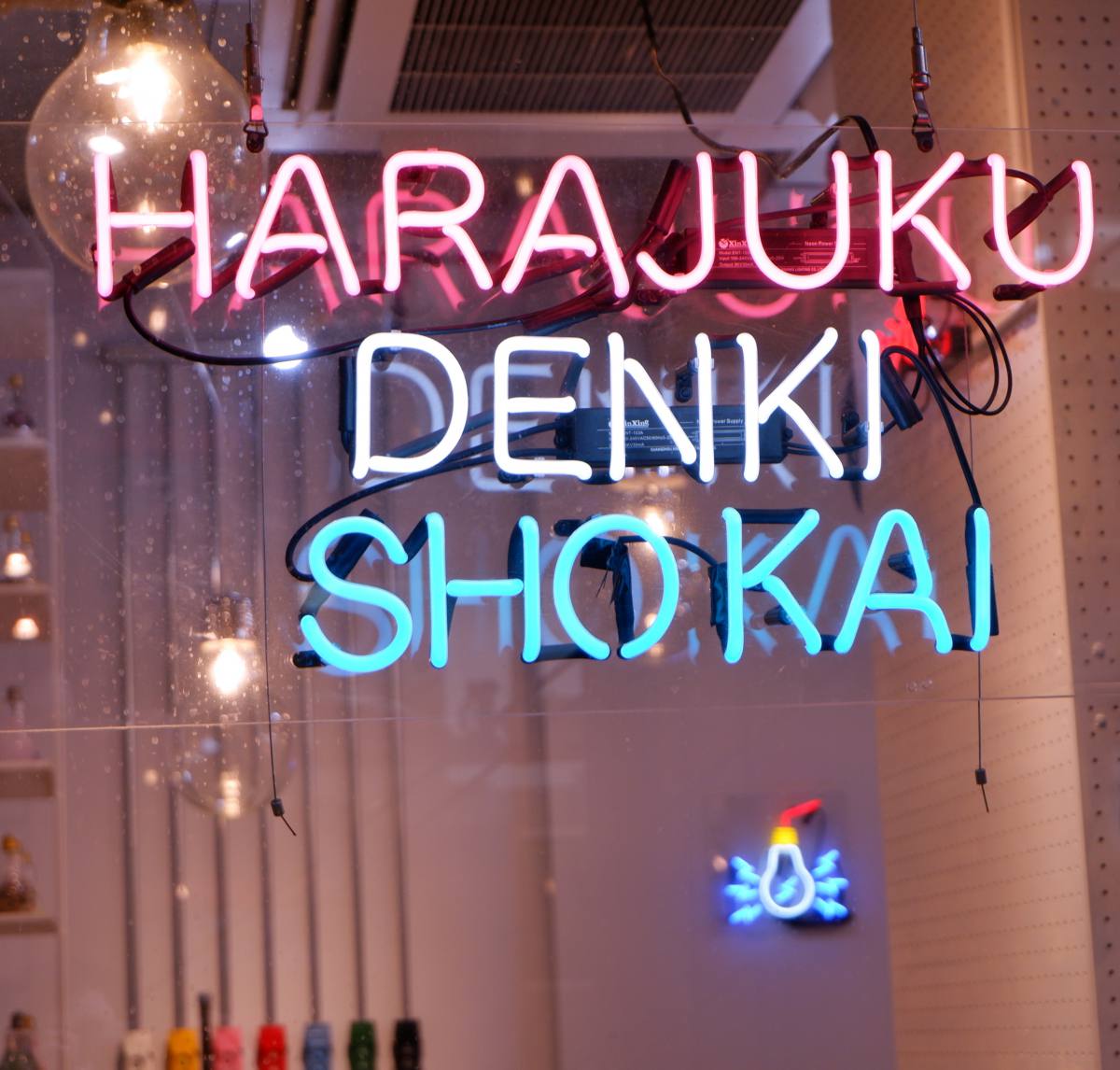 「明治神宮前駅」から歩いて5分ほどの場所にある「原宿電気商会」。店内には、カラフルな電球や「どうぶつえん」の自動販売機など、写真映えしそうなアイテムがたくさん!原宿らしいおしゃれで可愛い雰囲気が漂っていて、写真を撮りたい衝動にかられます!