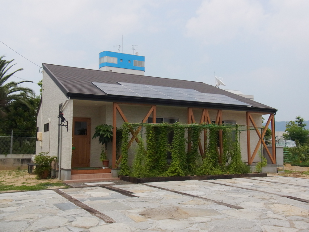 香川観光の拠点・JR高松駅から海岸線沿いを車で走ること約7分、街なかの喧騒から少し離れた場所に「プシプシーナ珈琲」はあります。お店はかわいらしい一軒家、店前にある緑の花壇とネコの看板が目印です。