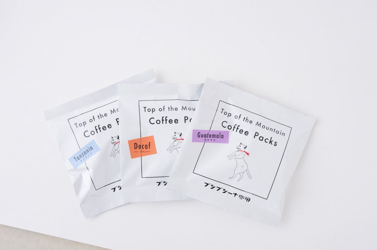 プシプシーナ珈琲では、コーヒー豆やかわいいオリジナルグッズを販売。写真はドリップバッグ1個292円。パッケージもとってもキュートで、バラマキみやげにピッタリ。