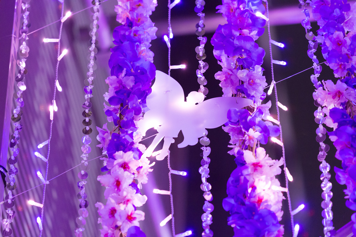 柔らかな印象を与えてくれる花のオーナメントと、見る角度によりきらめきを変化させるイルミネーションを組み合わせる幻想的な演出は、ハッとするほど美しく魅せられます。