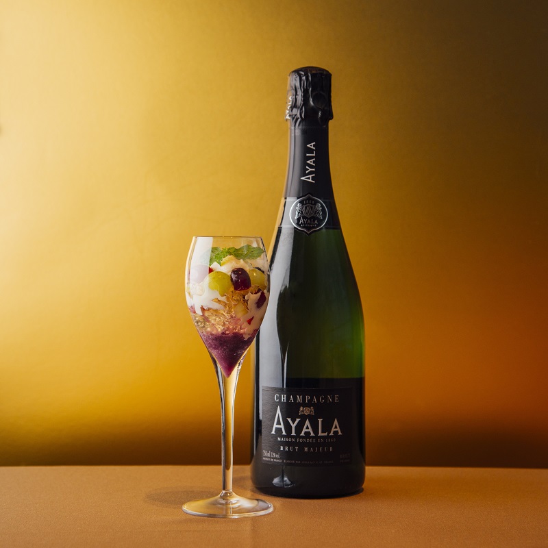 仕上げにシャンパンを注いでいただく『37 ローストビーフ』の「37 パフェ・ド・シャンパーニュ」1080円は、2種類のブドウを使用した小さめサイズのパフェ。シャンパンはノンアルコールに変更可能なので、お酒が飲めない人でもオトナな雰囲気が楽しめます。シャンパンカクテルのような食前酒としていただくのもオシャレ! ※1日限定37食 ※12月22日(土)までの提供