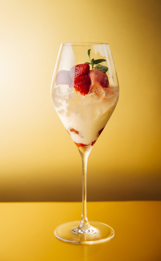 『ワインショップ・エノテカ & バー』では、ワインショップならではのスパークリングワインのジュレを贅沢に使用した、「シャンパーニュと苺のパルフェ(※写真)」1944円がいただけます。ゼリーやシャーベットなどを堪能したのち、シャンパーニュを注ぐパフォーマンスも。ムービージェニックな瞬間も見ごたえありです。※1日限定10食、アルコール含む