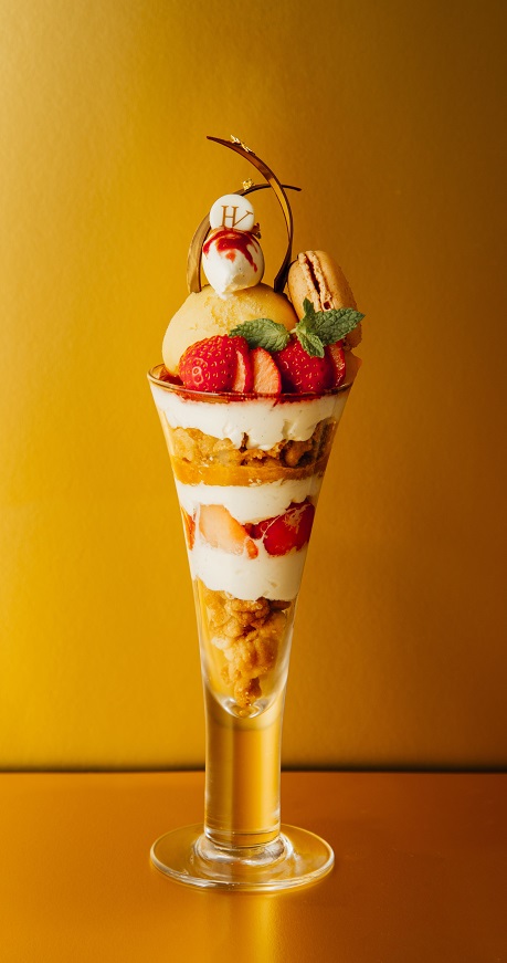 『ユーゴ アンド ヴィクトール』の「パフェ ド ノエル」1836円は、たっぷりフレッシュなイチゴやマンゴーがトッピングされた、見た目も華やかなパフェ。ミックススパイスが効いたクランブルとキャラメルソースをアクセントに、さまざまな食感が楽しめる贅沢なパフェです。