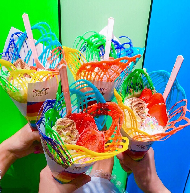 そのほかにもカラフルなわたあめやロールアイス、フローズンなど、たくさんのレインボーメニューがいっぱい。原宿の賑わいにも映えるかわいいスイーツをぜひお試しあれ!