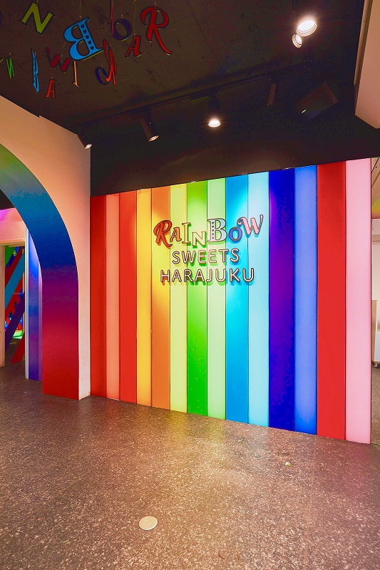 商品はもちろん、このお店でしか通ることのできない「レインボーロード(※写真)」やレインボーの壁面になっているフォトスポットなど、何から何までレインボーづくし!原宿竹下通りにあるショップならではのユニークな体験ができます。