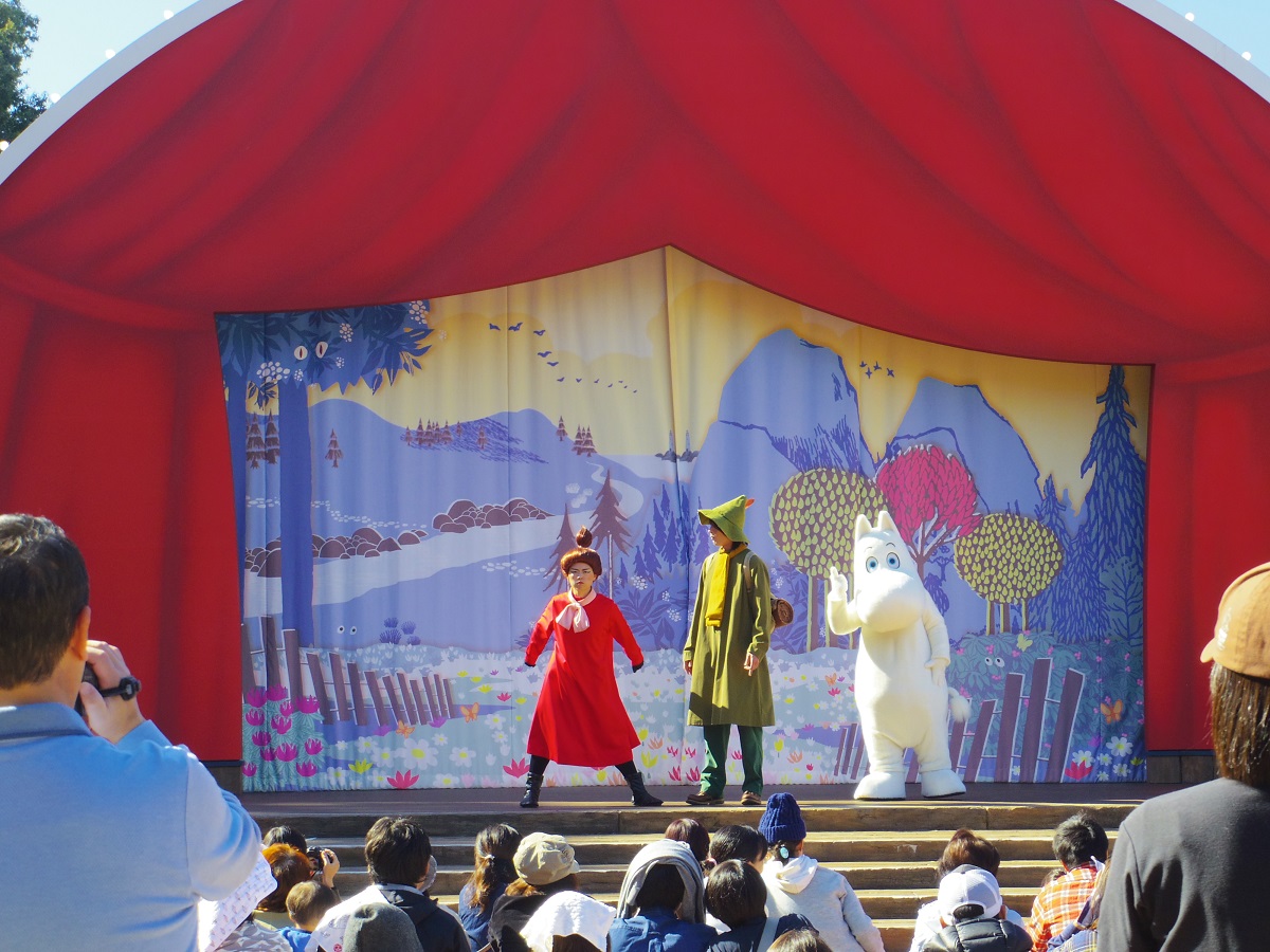 パーク内で時間をチェックして見たいのは、ムーミン谷エリアにある「エンマの劇場」で行われるキャラクターショー。1日3回、約30分のショーでは、ムーミンと仲間たちがムーミン谷で繰り広げる日常を描いたもの。舞台は客席に近く、キャラクターが客席の間を練り歩くことも!