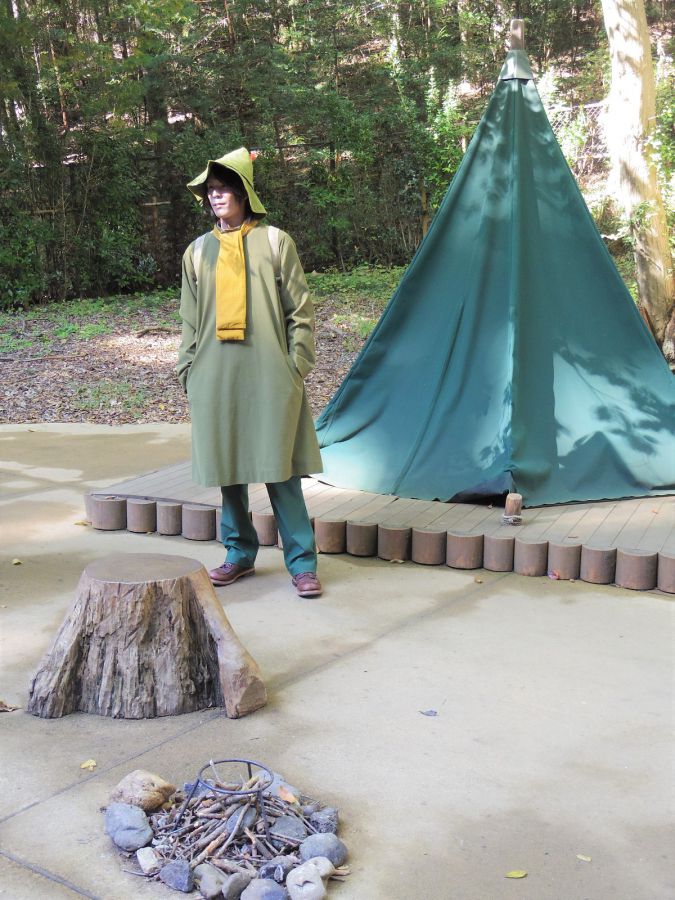 買い物が終わり、スナフキンのテントへ向かうと、ちょうどスナフキンが!マイペースでクールな印象のスナフキンですが、テントの横でたそがれながらも、お客さんと一緒に写真撮影や、お話しもしてくれるんです。