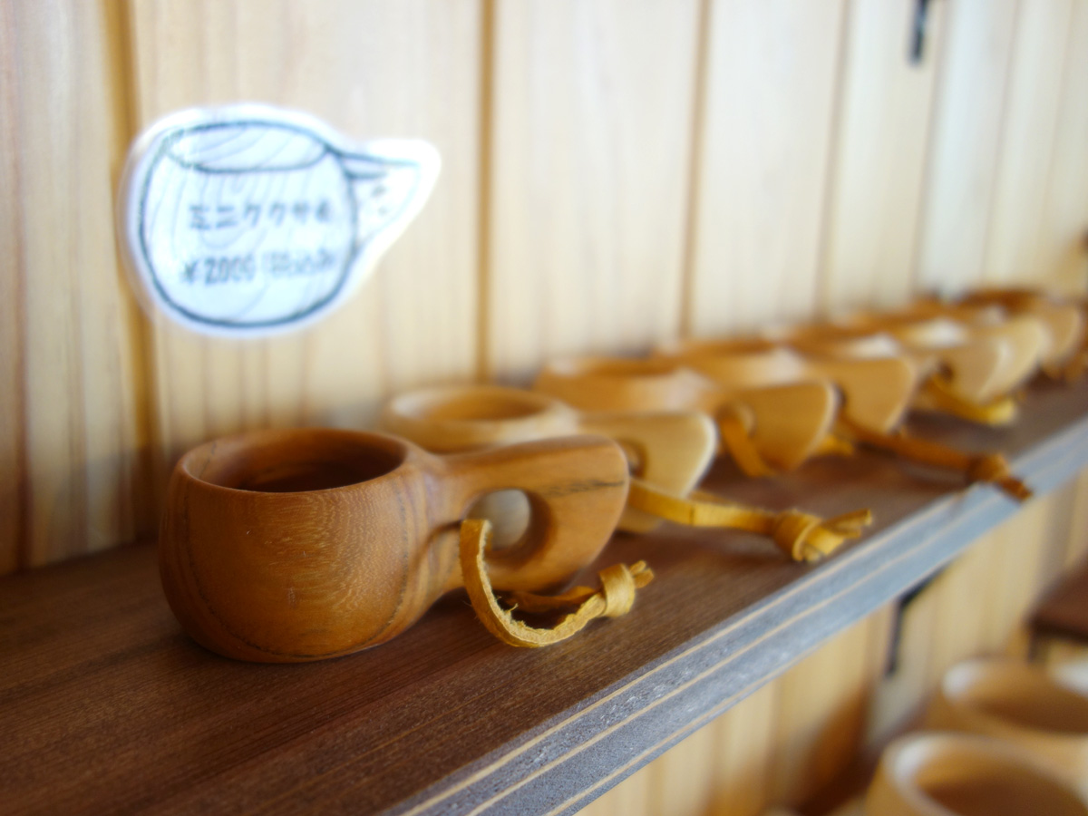 カヌー工房「ソグベルグ」では、北欧の伝統的な木製マグカップ「ククサ」や、取っ手部分をひねると鳥の鳴き声のような音のする「バードコール」などの製作体験もできます。
