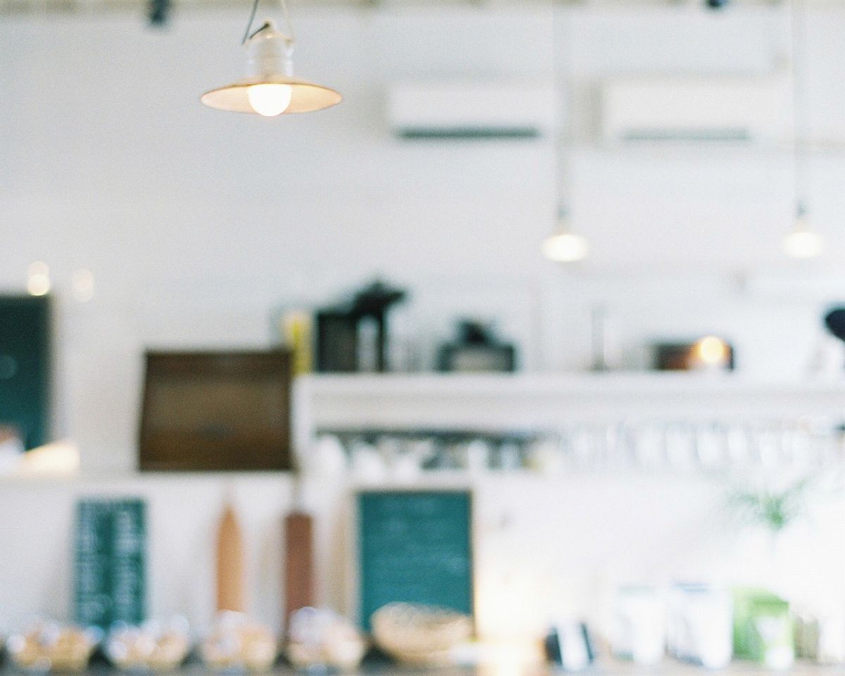 ダークな感じの木造に白い壁がとても明るくおしゃれに見える店内。裸電球もかわいらしいですよね。