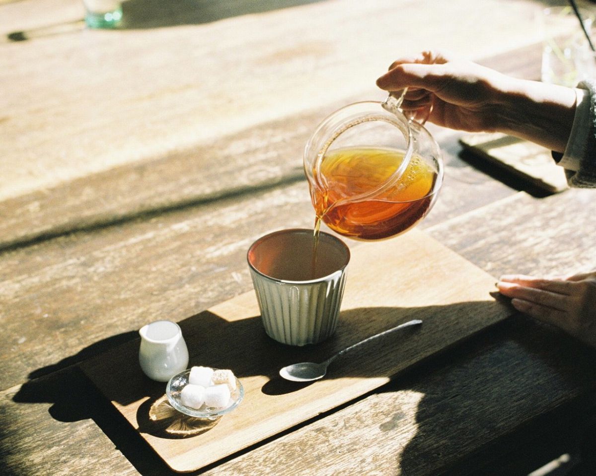 ランチにはドリンクを付けることもできます。紅茶も光を浴びて、とても綺麗で美味しそうに見えます。