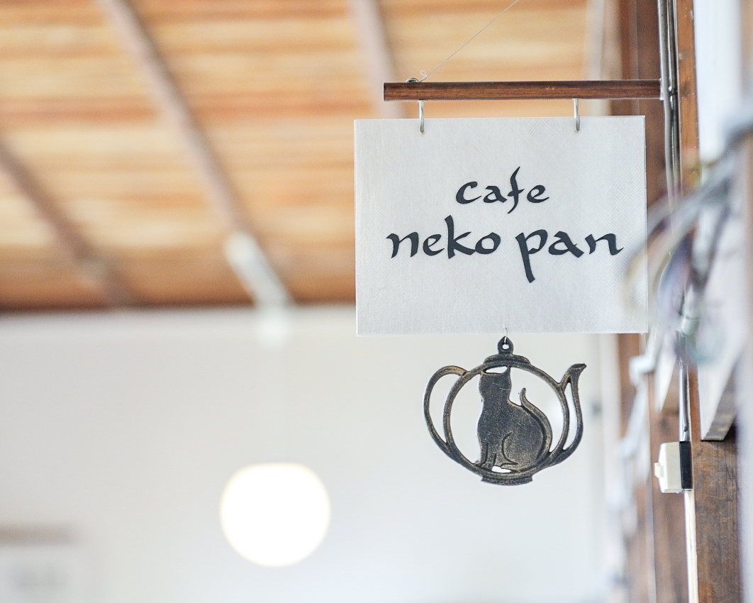 「café ねこぱん」は、ここですよ。と言わんばかりの指差しに、つい引き込まれます。