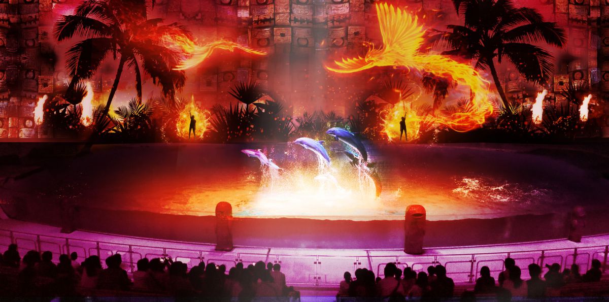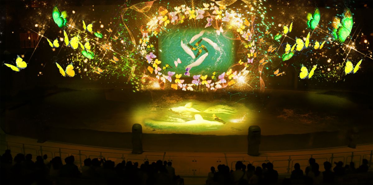 黄色の世界では、海の中でイルカとトレーナーが優雅に踊り、歌う、安らぎの世界に。そしてフィナーレでは、トレーナーと全頭のイルカが一体となり、鮮やかな愛と活気が蘇った世界へ…。圧巻のショーに感動せずにはいられません。