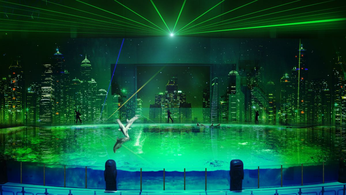 光の魔法を解き放ち、イルカたちが躍動する緑の世界。未来の形を永遠の愛の力で創造していく姿は見ごたえあり!