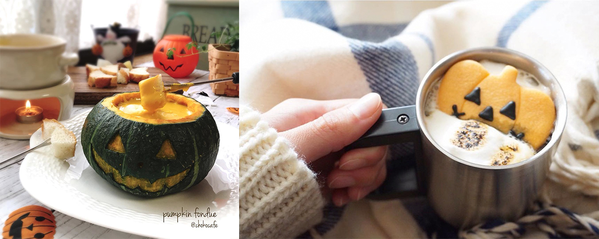 ハロウィンらしいかぼちゃ! フォンデュや飲み物などにかぼちゃモチーフを使うステキな楽しみ方 左 chokotto.chocolatecafeさんの作品 /右 to_mrnさんの作品: