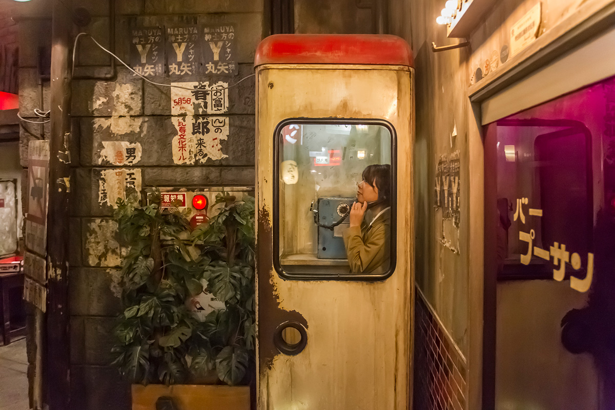使い込まれた風情の公衆電話ボックスも。はがれかかった壁のポスターや古びた道路標識など、じっくり見れば見るほどおもしろポイントを発見できますよ。