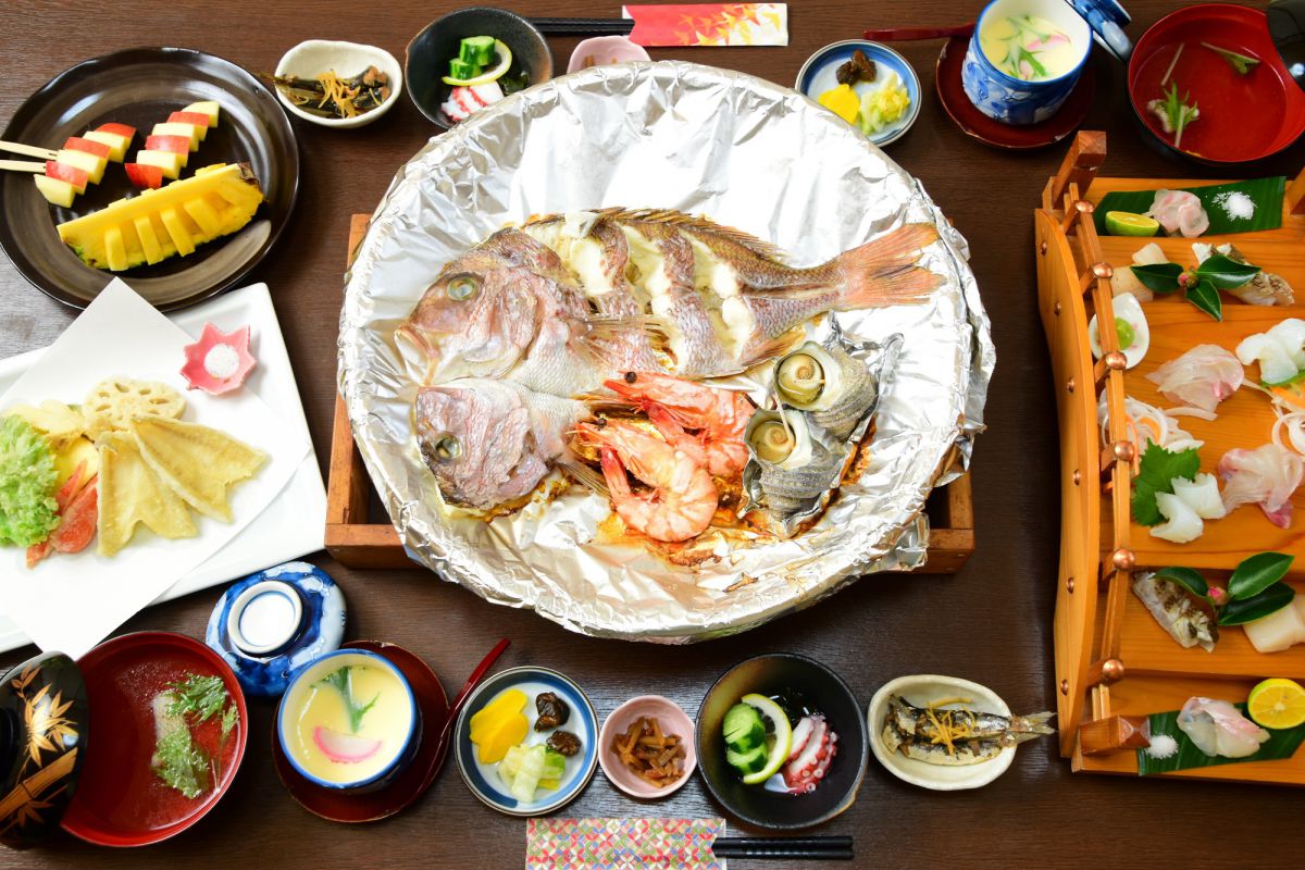 まずは、なめらかな湯で美容と健康にもいいといわれる、南あわじ市の天然温泉「うずしお温泉」にじっくり浸かって。旅の疲れを癒したあとは、お待ちかね、豪華部屋食の時間です。