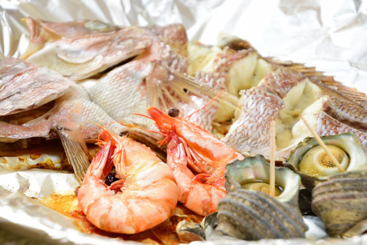 驚きなのが、淡路島名物の“宝楽焼”。加熱した陶板の上で、海の幸がジューっと音を立てて焼かれます。