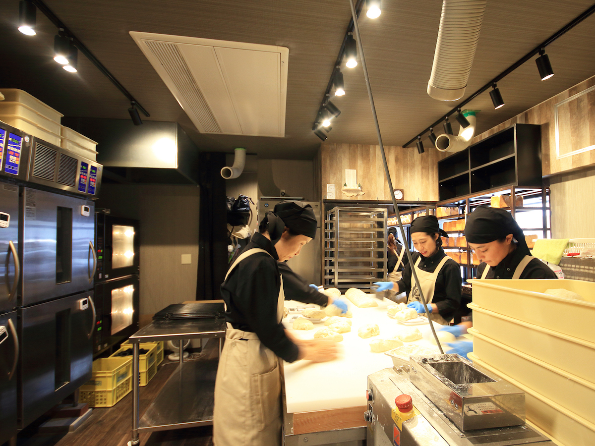 特別に覗かせてもらった厨房では、店員の人たちが常にフル稼働。その日に調合された生地を、2斤サイズの食パンの型に取り分けています。ベーシックな食パンだからこそ、素材や製法にこだわり、生地の配合も天候や季節で微妙に変えているそうです。