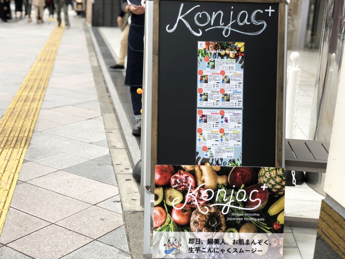 新宿駅東口、待ち合わせ場所の定番・新宿アルタ。その1階に「コンジャックプラス」はあります。お店のメインテーマはずばり腸活。美肌に欠かせない食物繊維やセラミドをたっぷり含んだスムージーが購入できます。