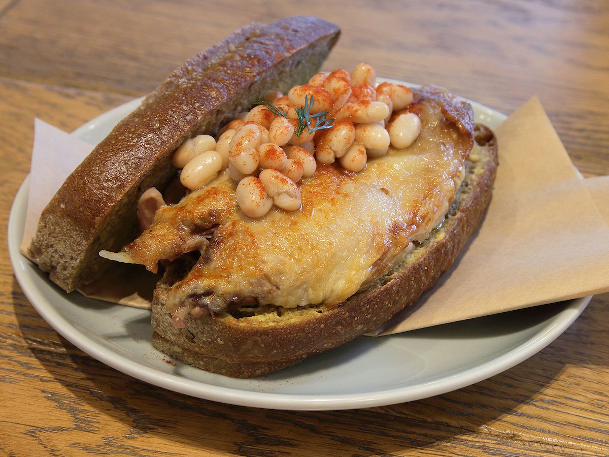 和知シェフが手がけたサンドウィッチは、ほかにもあります。酸味のある黒パンを使用した「トロサ」(900円)は、柔らかい鶏肉と白いんげん豆をトッピング。ヨーロッパの伝統的な家庭料理を連想させる、栄養満点の1品です。ドイツビールや白ワインが合いそう!