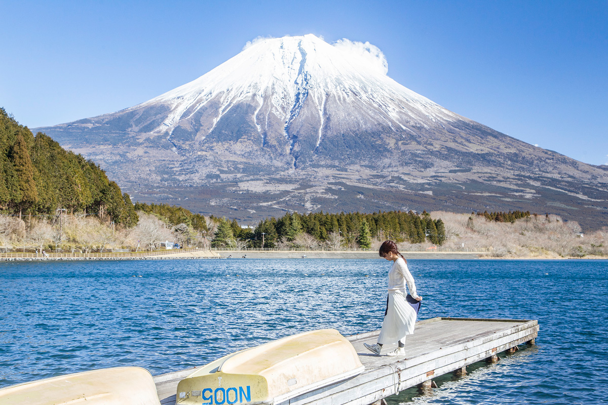 周囲約3.3kmの「田貫湖(たぬきこ)」は、真東の方向に山裾を広げた富士山がドーンとそびえ立つ富士ビュースポット。北側と南側にキャンプ場があり、釣りやボート遊びも楽しめます。野鳥のかわいいさえずりが聞こえ、空気が澄んでいてなんとも爽快!