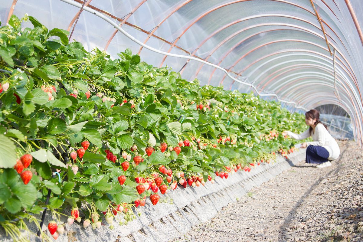 静岡市の南部、駿河湾沿いの国道150号はいちご海岸通りと呼ばれ、30軒ほどの農園が並ぶいちご狩りスポット。なかでも明治30年頃から栽培を始めた「ストロベリーフィールド」は、いちご狩り観光農園の先駆けなんです。