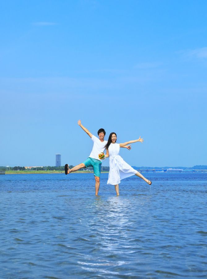 湖の中心に立って、一面ブルーの世界を体験。期間限定の絶景写真を撮る/浜名湖(浜松市)
