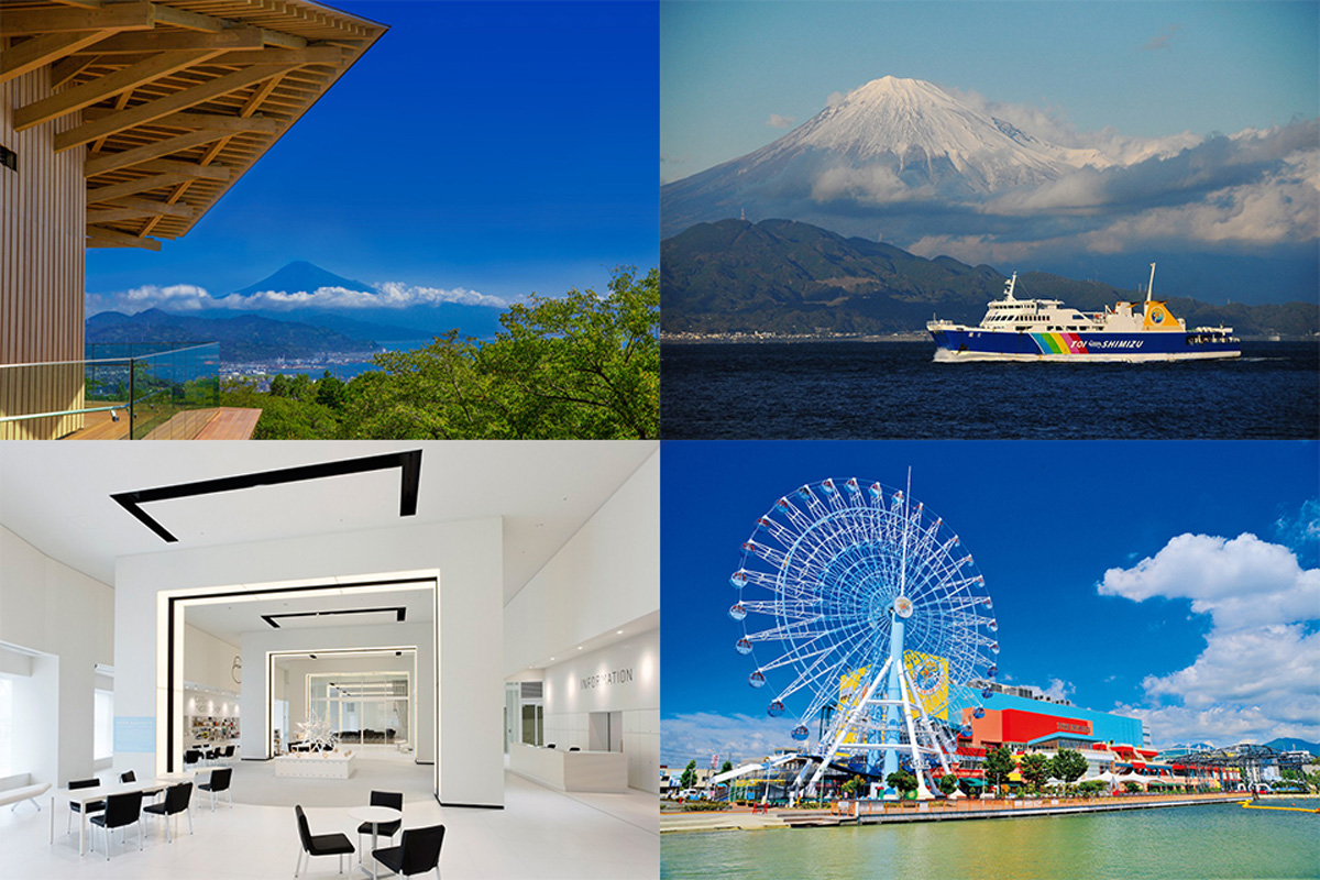 2018年11月に誕生した無料の展望スポット。静岡県産の木材をふんだんに使い、自然と調和した設計は有名建築家・隈研吾建築都市設計事務所によるもの。3階屋上、1周約200mの展望回廊を歩くと、富士山や駿河湾、三保の松原など、このエリアを代表する景色が見られます。