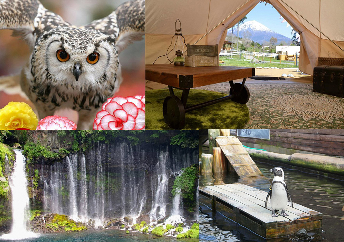 全天候型ハウスには目の高さにも天井にも花がいっぱい。ベゴニアでかたどった富士山や、「女王の耳飾り」と呼ばれるフクシアが見られます。もうひとつの楽しみはかわいい鳥たち。フクロウやペンギン、エミュー、インコなどとふれあって、迫力のバードショーも楽しんで。