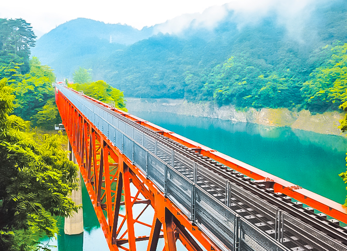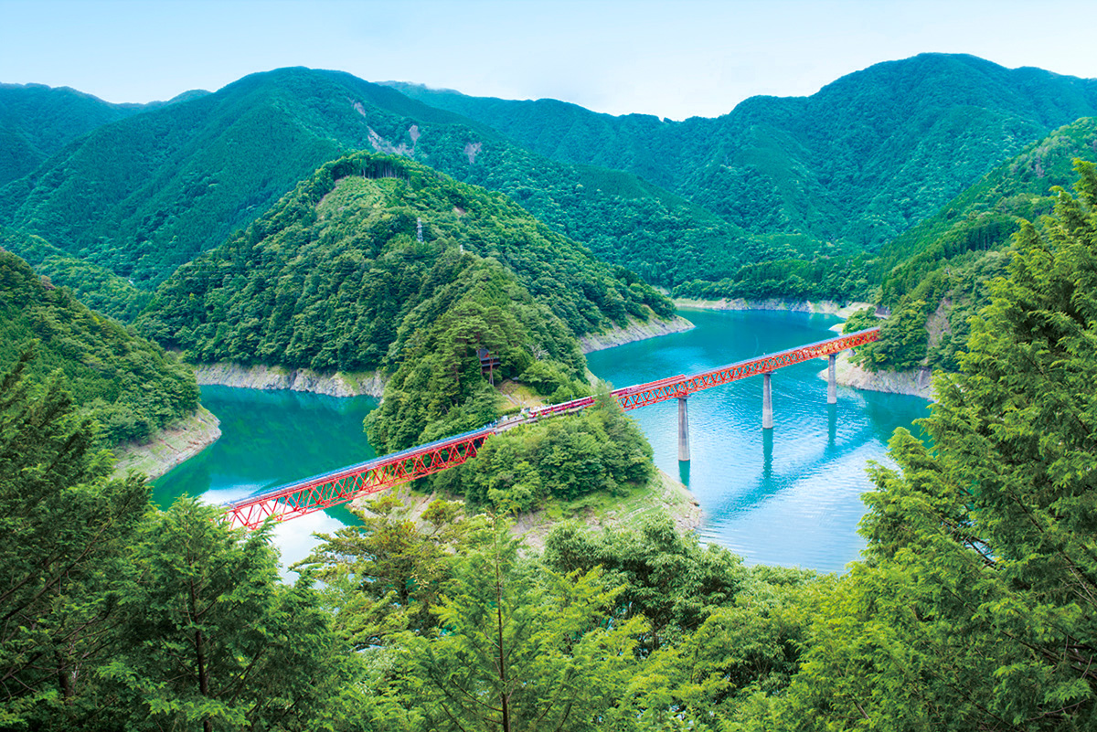 エメラルドグリーンの湖上に浮かぶ秘境の駅&絶景橋を渡る/大井川鐵道 奥大井湖上駅・夢のつり橋(川根本町)