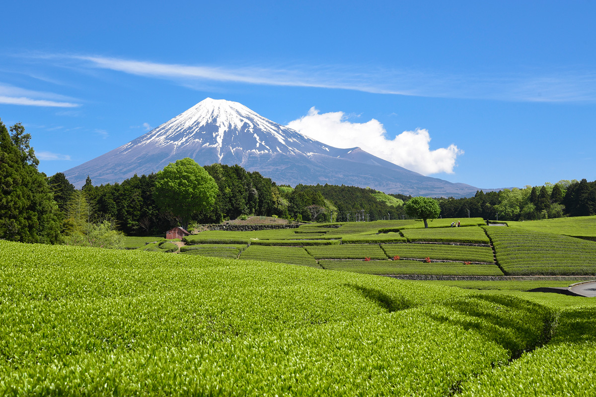 お茶処・静岡の春の景色といえば、新茶が芽吹いた茶園。段々に整列した茶畑の先に富士山が見えるのは新茶の収穫時期にあたる5月上旬~5月中旬で、おすすめの場所は富士市にある「大淵笹場」や「今宮」です。一面グリーンの茶畑の後ろに、山裾を広げた富士山が雄大にそびえ立ち、日本の原風景といった趣。ちょうどゴールデンウイークの頃なので、晴れた日に出かけてみては。