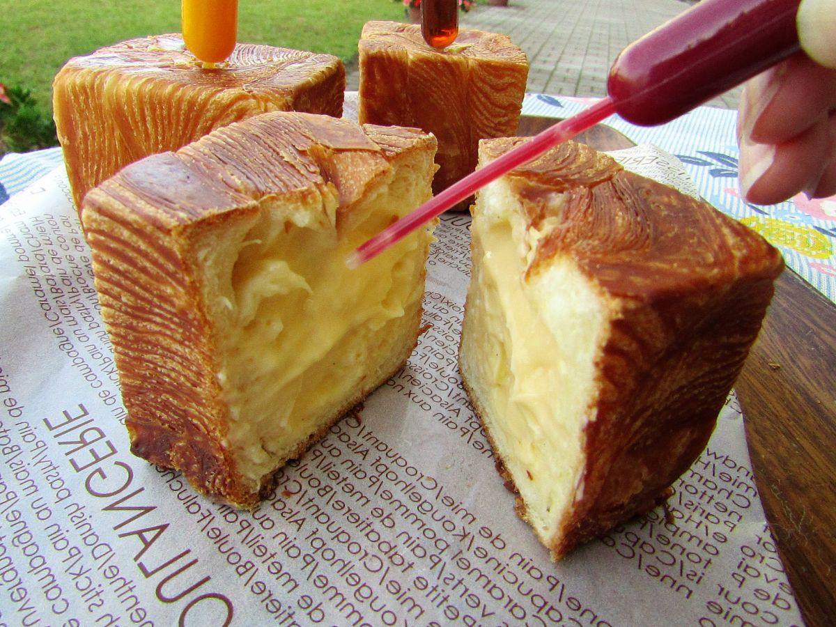 三つ編みにしたデニッシュ生地が焼きあがってから自家製カスタードを注入しています。そうすることによりクリームがたっぷりパンの中に入るのだとか。