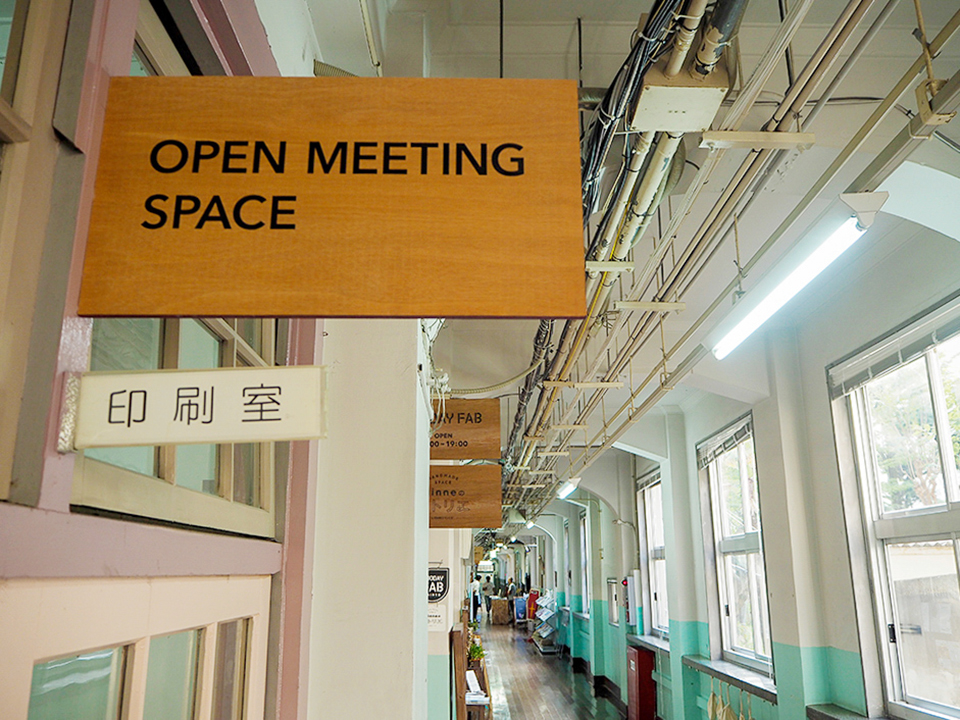 「Fukuoka Growth Next」の正面玄関から向かって右手側。小さな入口より足を踏み入れると、今回のお目当てである「awabar fukuoka」を発見! 教室の窓からは賑やかな声と光がこぼれています。