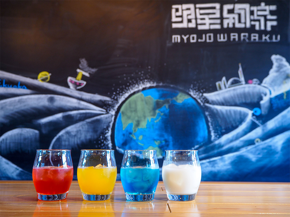 こちらは“クリエイティブとテクノロジーの祭典”である「明星和楽」というイベントのオリジナルカクテル。それぞれ異なる果物リキュールがベースで、味わいもさまざまです。