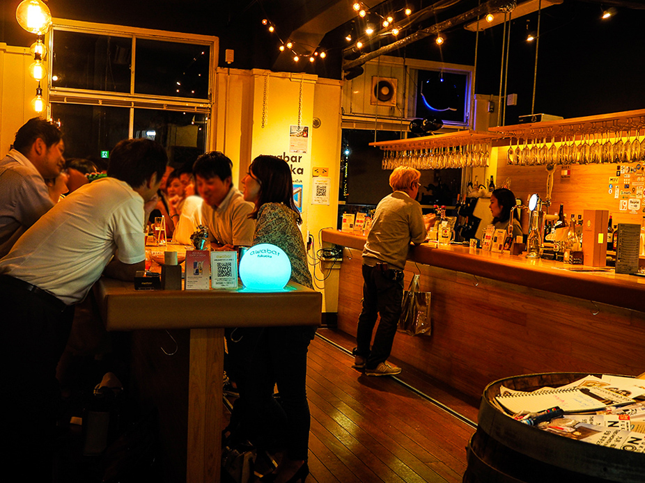 店内はオールスタンディングで、女性1人でも立ち寄りやすいカジュアルな雰囲気。また、1人で訪れてもあっという間にお隣と打ち解けて、気づけばグループになっている…なんてこともよくあるそう。