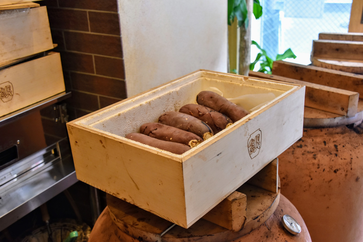 しっとりした食感を極めた焼き芋を作るべく、茨城県産のサツマイモ「紅はるか」を熟成させます。さらに壺のなかで3時間程度、じっくり熱したのが「つぼやきいも」です。ポイントは芋の甘みを閉じ込めた蜜の量。焼き上がりの直前は、蜜が皮ににじむことも。