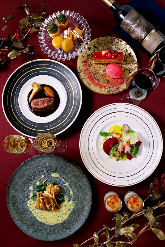 クリスマスディナーは全6品のフルコース。オマール海老やトリュフなど、クリスマスならではの豪華な食材を使った贅沢なコースになっています。今が旬のホウボウと白子のムニエルや、黒毛和牛のローストなど、店自慢のメニューが堪能できます。