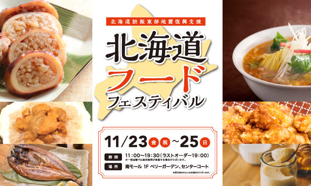 11月23日(金・祝)~25日(日)の3日間は、南モール 1階のベリーガーデン、センターコートで北海道のおいしいものが大集合します。