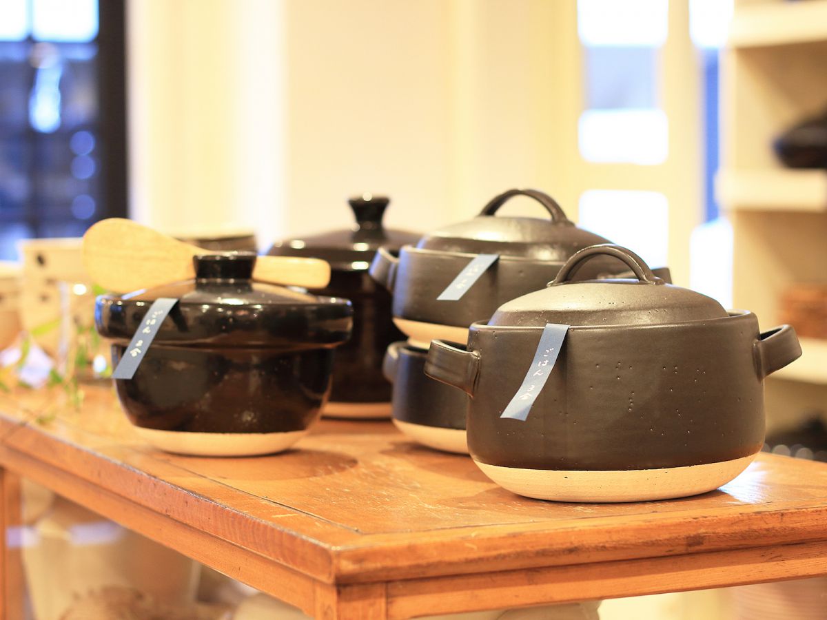 また、新作として中央に展示されていたのが、土鍋シリーズ(ごはん2合〜)です。角の取れた優しいラインで描かれた食器類は、毎日の食事をおいしく彩ってくれそうですね。