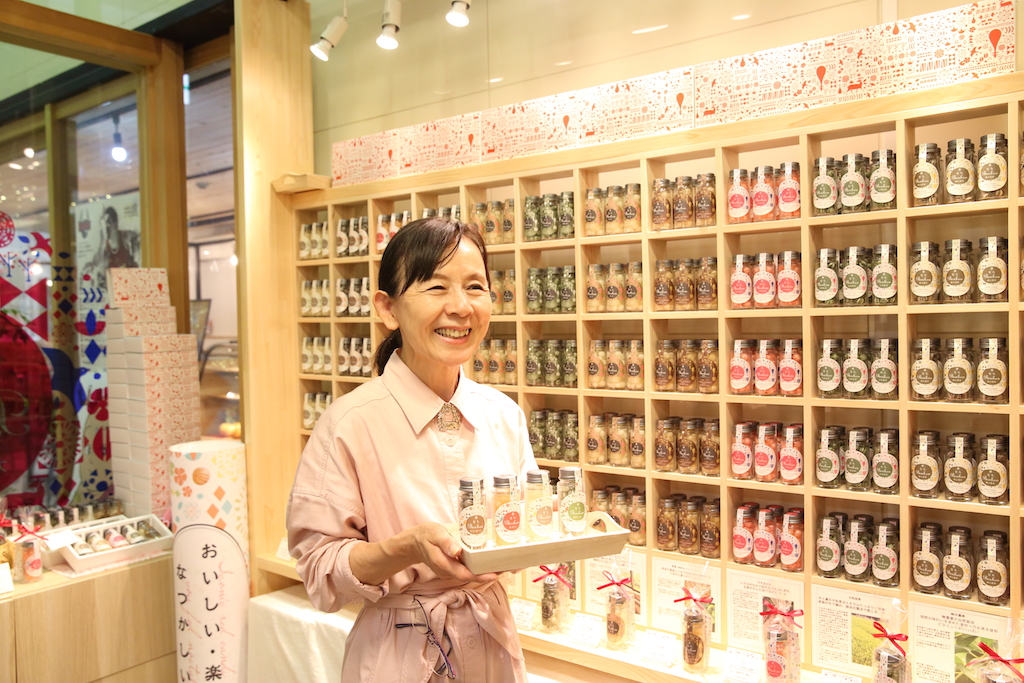 店頭で出迎えてくれたのは奈良食研究家の神谷さん。「ならBonbon」は、パリで洋菓子を学び、現在は奈良産食材の研究やレシピ開発に携わっている神谷さんが、奈良女子大学や地元生産者の方々と協力して生み出した、奈良の新しいお菓子です。