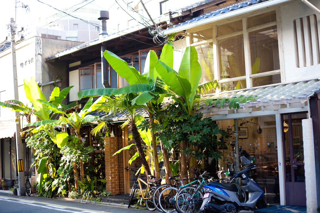 そのまま5分ほど歩いたところにある、大きなバナナの木が目印のお店が「Cafe Bibliotic Hello!」です。