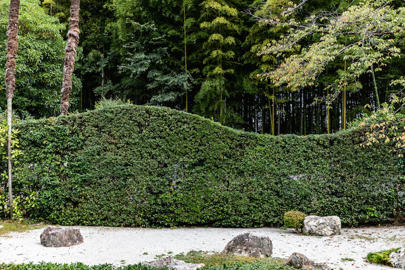 縁台に座って、苔と白砂と17の石で構成された枯山水庭園を眺めているだけで、心が静まっていくようです。