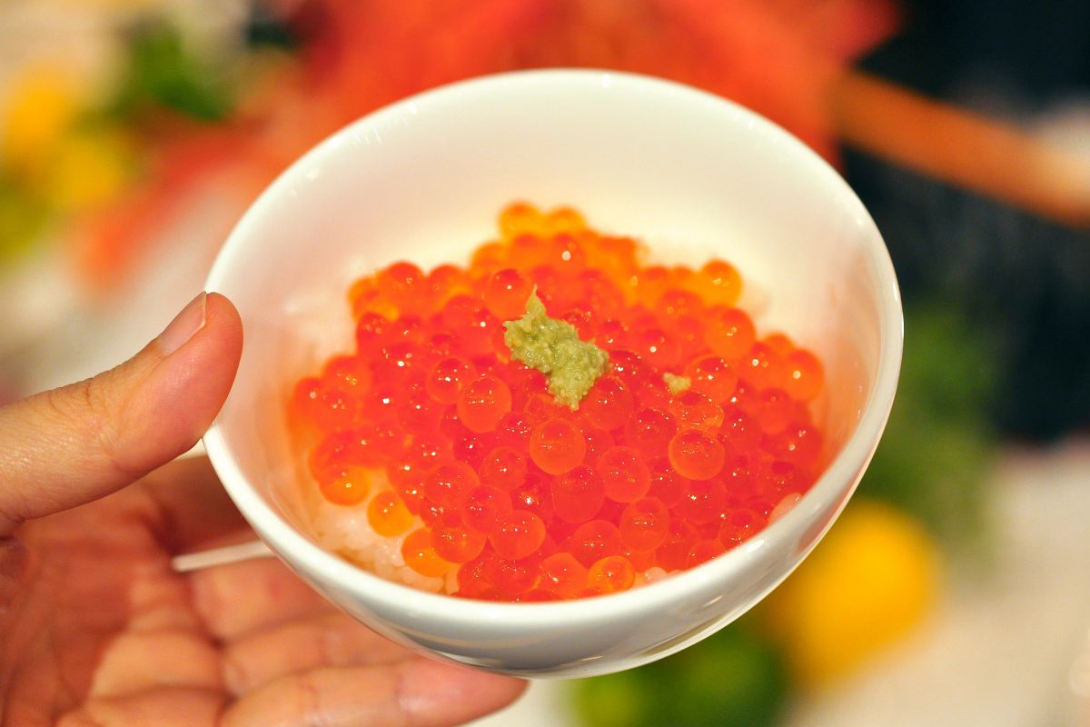 こちらはイクラ。直径30センチ級のどんぶりに、大粒のイクラがこれでもかと盛られています。アツアツのご飯をよそって、イクラ丼にしていただいちゃいましょう。