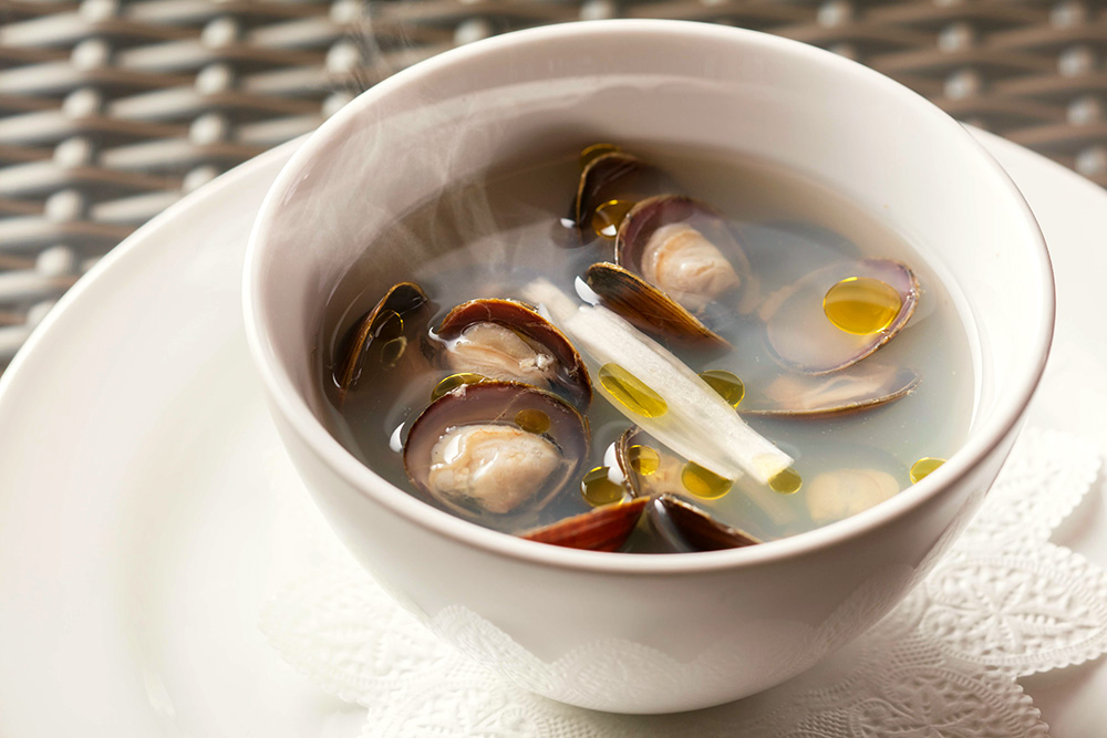 「網走湖産 角崎商店さんの“しじみ”のスープ」は、「こんなにしっかりした味のしじみだしは初めて」とシェフも太鼓判を押すメニュー。あっさりしているのに濃厚なだしは、ほかでは味わえない逸品です。