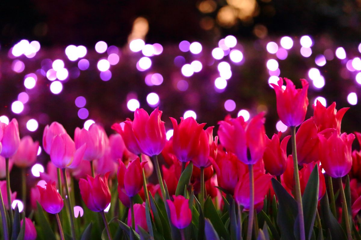 よく晴れた日には春を思わせるような陽気になる湘南の冬。2万株ものウィンターチューリップが開花し、華やかにライトアップされています。明るい太陽の下では見られない、花びらに反射する光を楽しんでみてください。