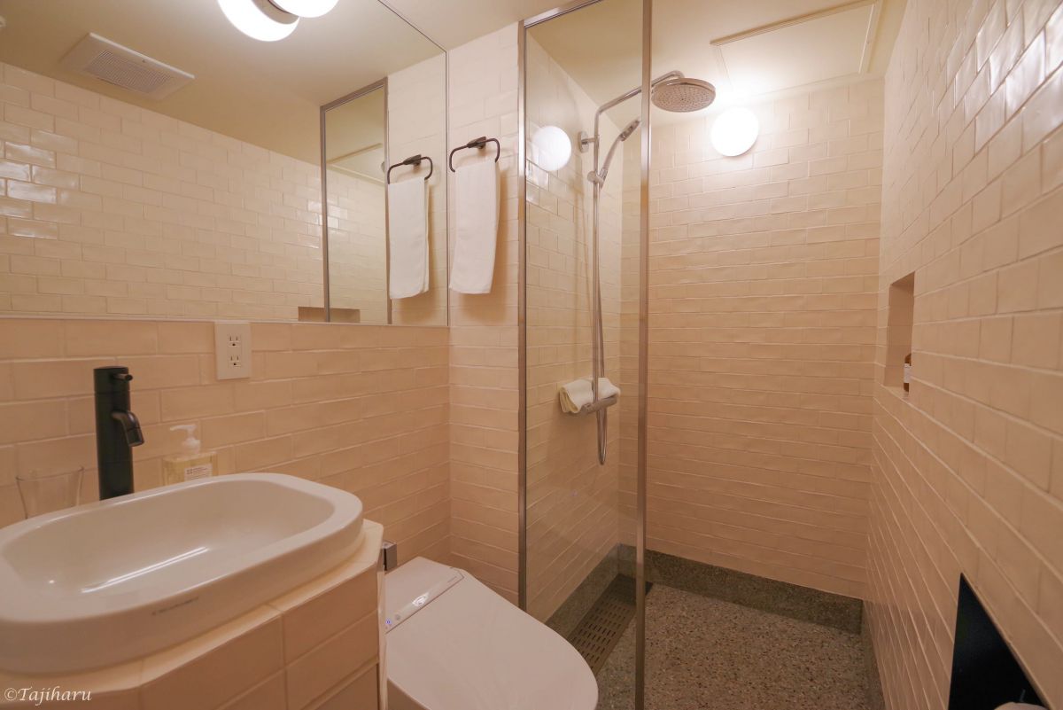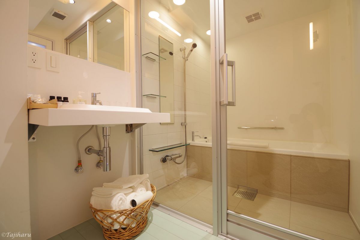 こちらの客室のバスルームはバスタブ完備。こちらもアメニティは「MARKS&WEB」です。
