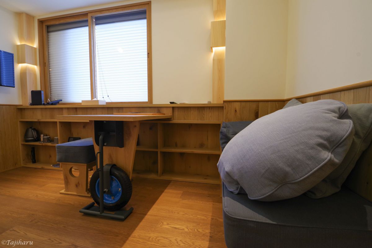 好きな場所に動かして固定できるようになっている可動式のテーブルが便利!